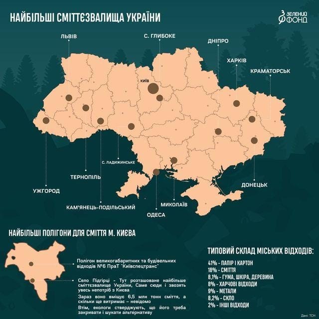 Промислове навантаження на довкілля від викидів підприємств у розрахунку на 1 кв. км площі країни становить близько 6,5 тонн, на душу населення – більше ніж 80 кг на рік. В Україні ще не напрацьований серйозний досвід у сфері утилізації відходів: переробляється всього 5-10% сміття, решта накопичується у вигляді захоронень на полігонах, які стають об’єктами екологічної небезпеки.