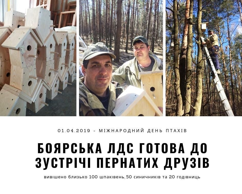 Сьогодні − Міжнародний День птахів. Він проходить щороку в рамках програми ЮНЕСКО «Людина і біосфера». Не випадково його відзначають саме в квітні, адже 1 квітня 1906 року була підписана Міжнародна конвенція з охорони птахів. Лісівники Боярської ЛДС уже з початку березня розпочали підготовку до зустрічі птахів. На території лісового фонду було вивішено близько 100 шпаківень 50 синичників та 20 годівниць.