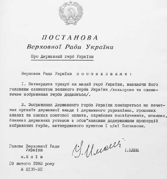 19 лютого Україна відзначає День Державного Герба. Саме цього дня у 1992 році Верховна Рада України затвердила Малий Державний Герб – золотий Тризуб на синьому щиті.