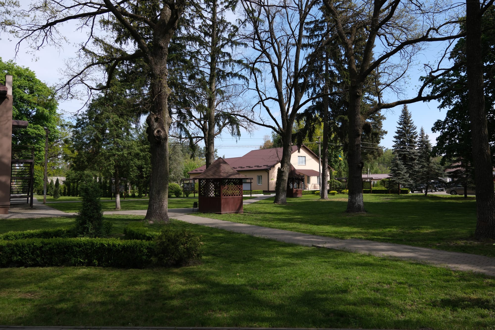 Паралельно з реконструкцією навчального корпусу, з метою пропаганди здорового способу життя, на території Дзвінківського ННВЦ було оновлено спортивний майданчик для студентів, на якому розміщене міні футбольне поле, волейбольна та баскетбольна площадки (фото 22). Зазначимо, що спортивним інвентарем студентів забезпечує лісова дослідна станція. Також у ННВЦ є три столи для настільного тенісу.Дзвінківський ННВЦ розташований в оточенні хвойних лісових масивів. Чисте та свіже повітря підвищує розумову активність мозку та корисне для здоров’я. У зв’язку з цим виникла та була реалізована ідея будівництва Екокласу, де студенти мають змогу опрацьовувати матеріали, отримані під час польових робіт (фото 23). Також, на території бази практик розміщено чотири альтанки.Паралельно з будівельними роботами на території Дзвінківського ННВЦ проводились роботи з озеленення та благоустрою території.