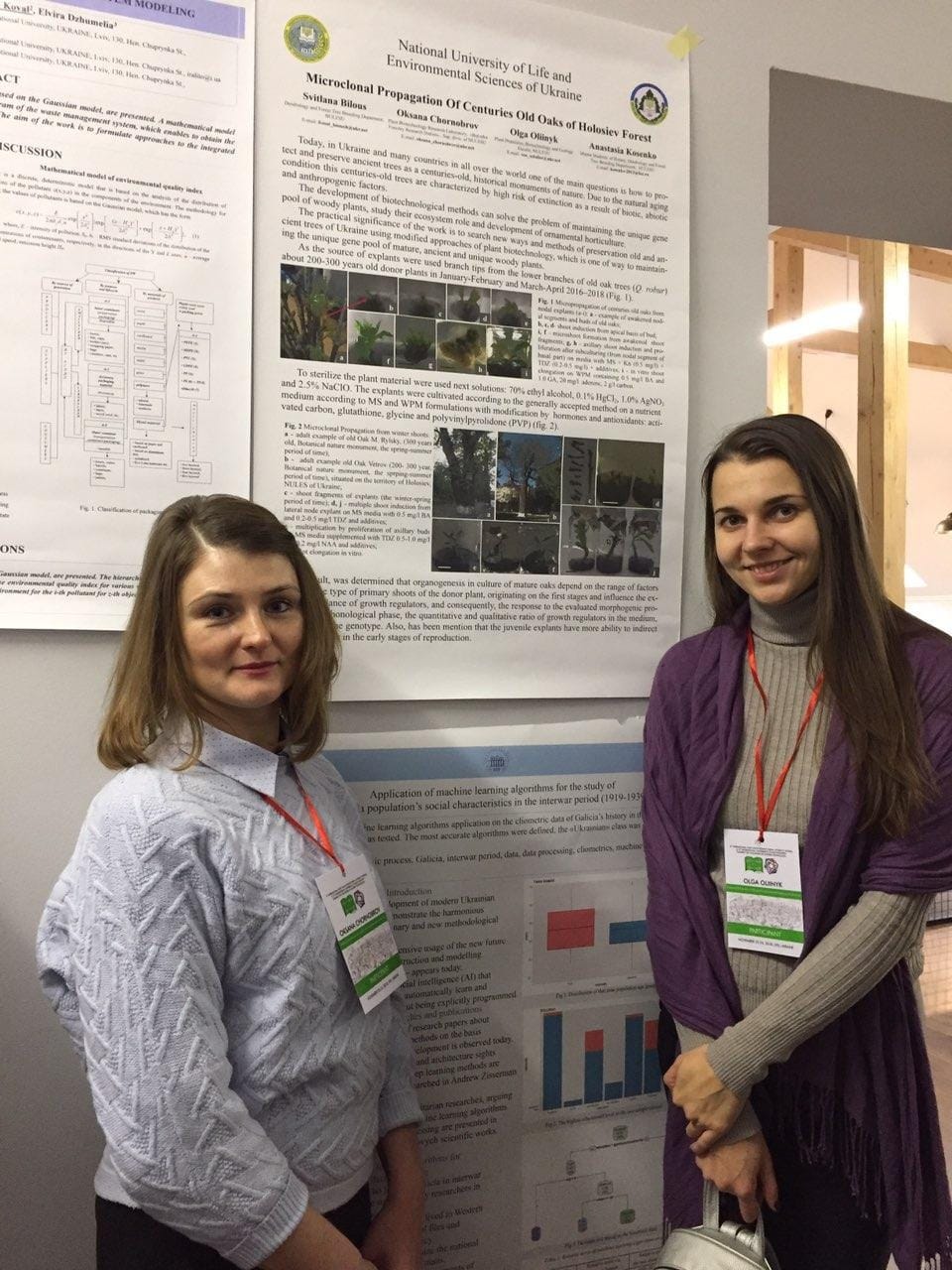 Колективом учених у складі Оксани Чорнобров, Світлани Білоус, Ольги Олійник та Анастасії Косенко була представлена комплексна наукова робота на тему: «Microclonal Propagation of Centries Old Oaks of Holosiev Forest» (виконувалася упродовж 2015−2018 рр. на базі двох лабораторій)