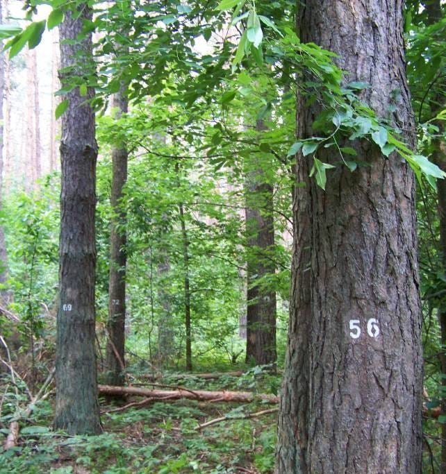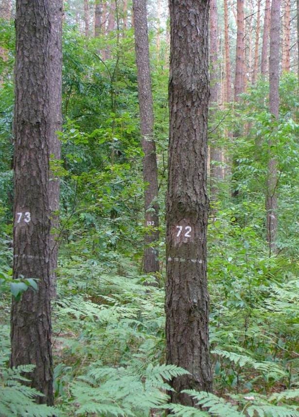 Серед найцінніших таких об'єктів – культури сосни звичайної різної початкової густоти, закладені ще навесні 1940 року: від 2,5 до 30 тисяч рослин на гектар. Попри воєнні роки та відсутність догляду, культури вижили, а з 1951 року на постійних пробних площах ведуться систематичні вимірювання. Ці насадження дають змогу безпосередньо побачити, як початкова густота визначає подальший ріст, продуктивність та стійкість соснового лісу.