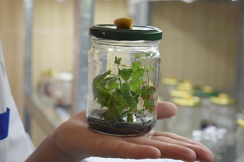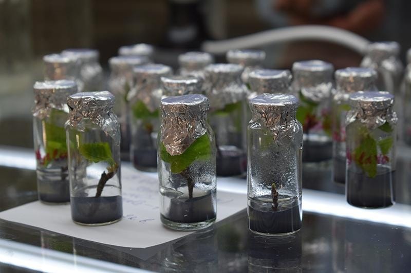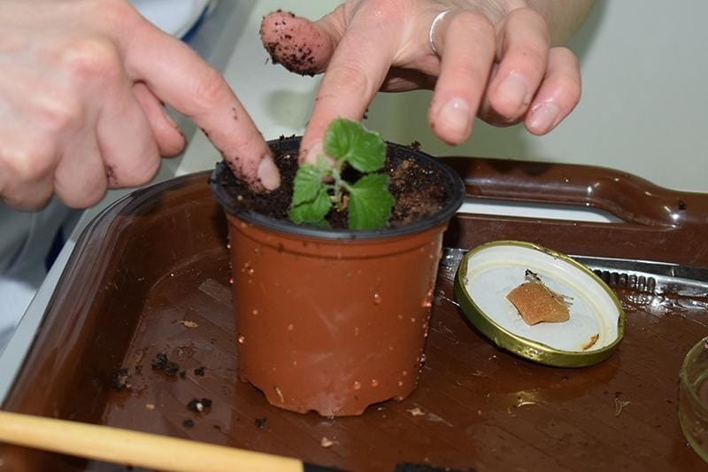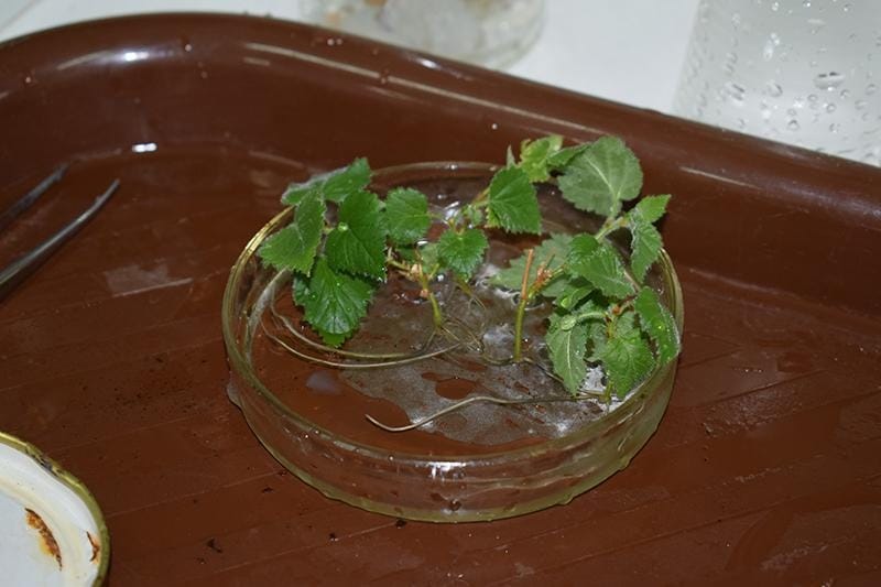 Після теорії ми приступили до практики: із культурального лабораторного посуду пінцетом обережно виймали асептичні оздоровлені рослини-регенеранти із добре сформованою кореневою системою, промивали коріння від залишків живильного середовища у воді, висаджували у контейнери зі стерильним завчасно приготовленим субстратом