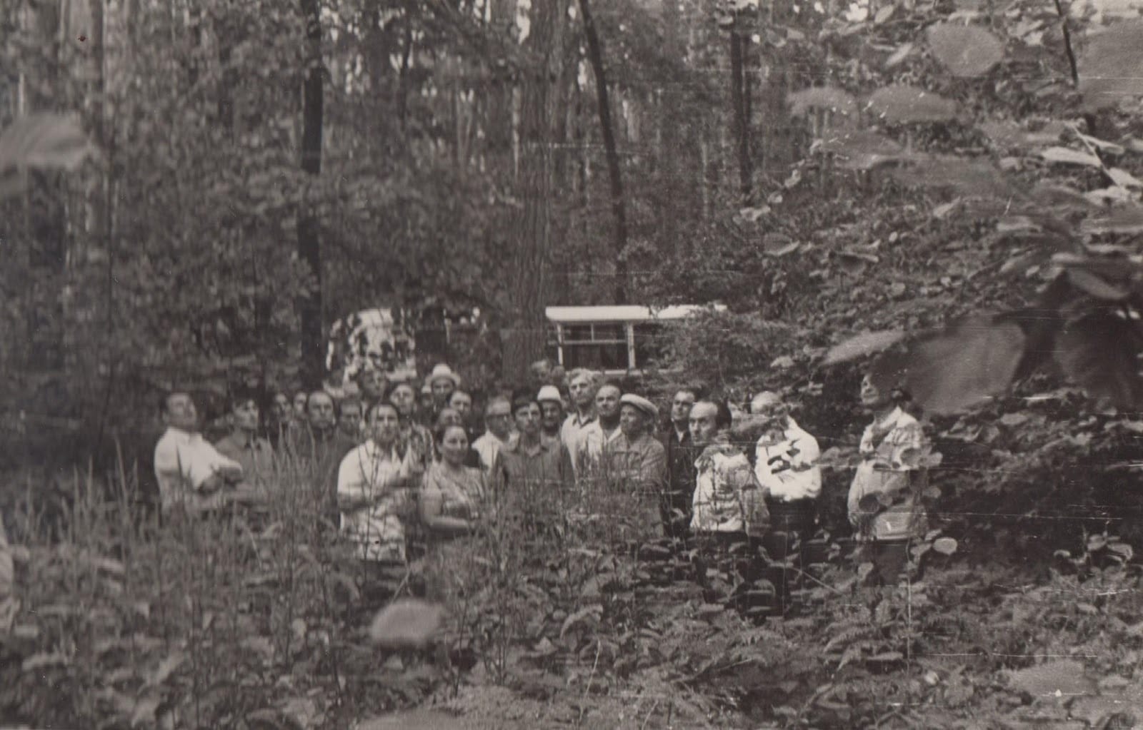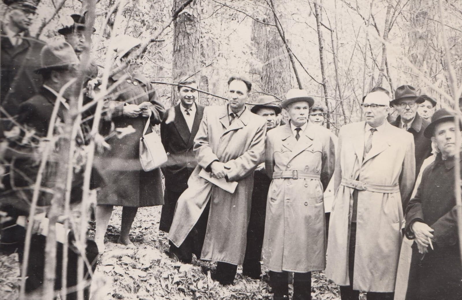Фото 22. Учасники Київської обласної конференції лісового господарства і лісозаготівлі на одній із дослідних ділянок Жорнівського лісництва (травень 1965 р.)