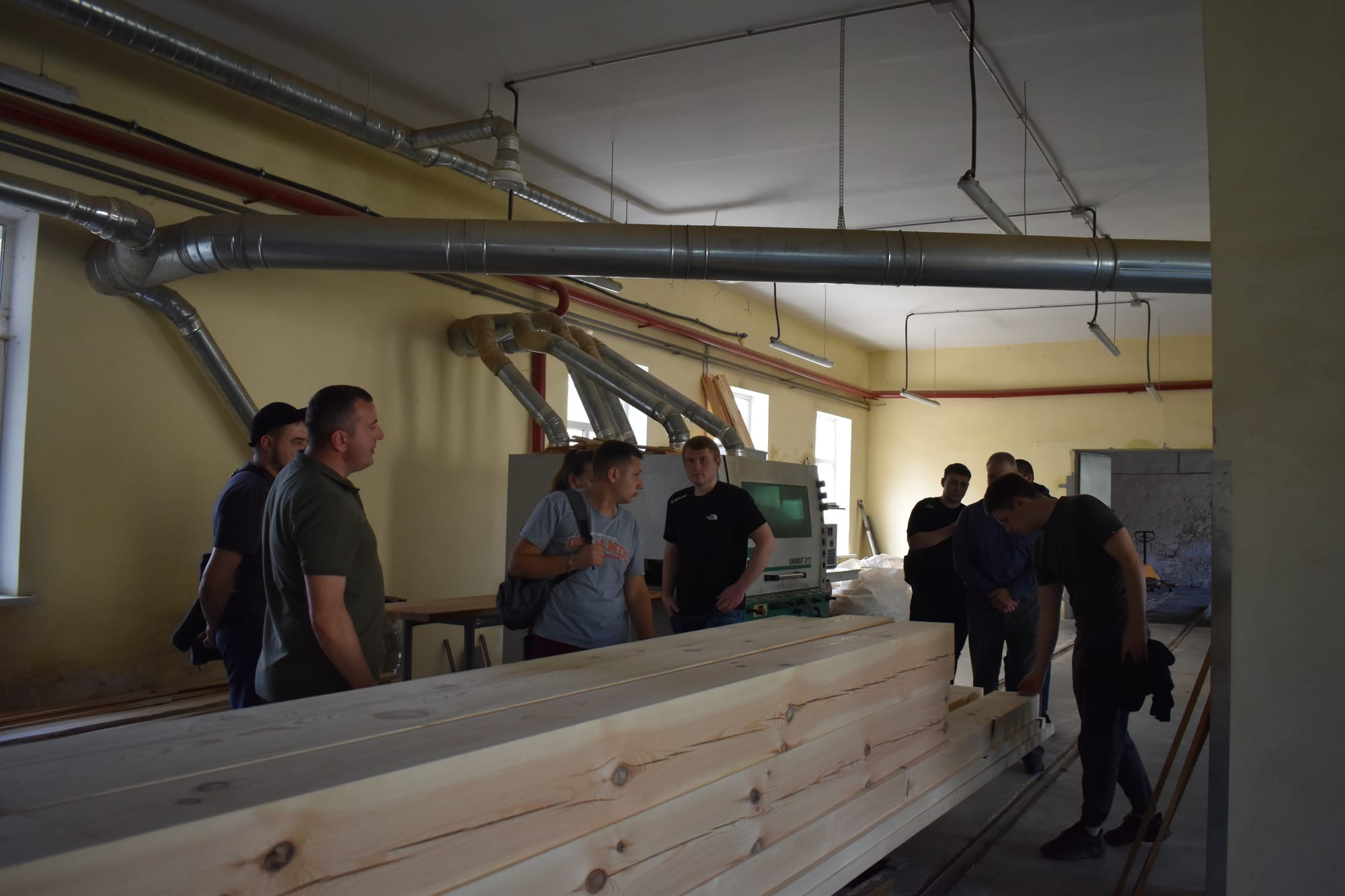 Під час практичних виїздних занять студенти ознайомлюються з повним виробничим циклом переробки деревини – від розкрою круглих лісоматеріалів до виготовлення готових виробів. Наочно бачать послідовність технологічних операцій, включаючи первинну обробку, сушіння, калібрування, шліфування, з’єднання елементів, а також фінішне оздоблення деревини. Обговорюють принципи раціонального використання деревини, зменшення відходів та підвищення якості кінцевого продукту;