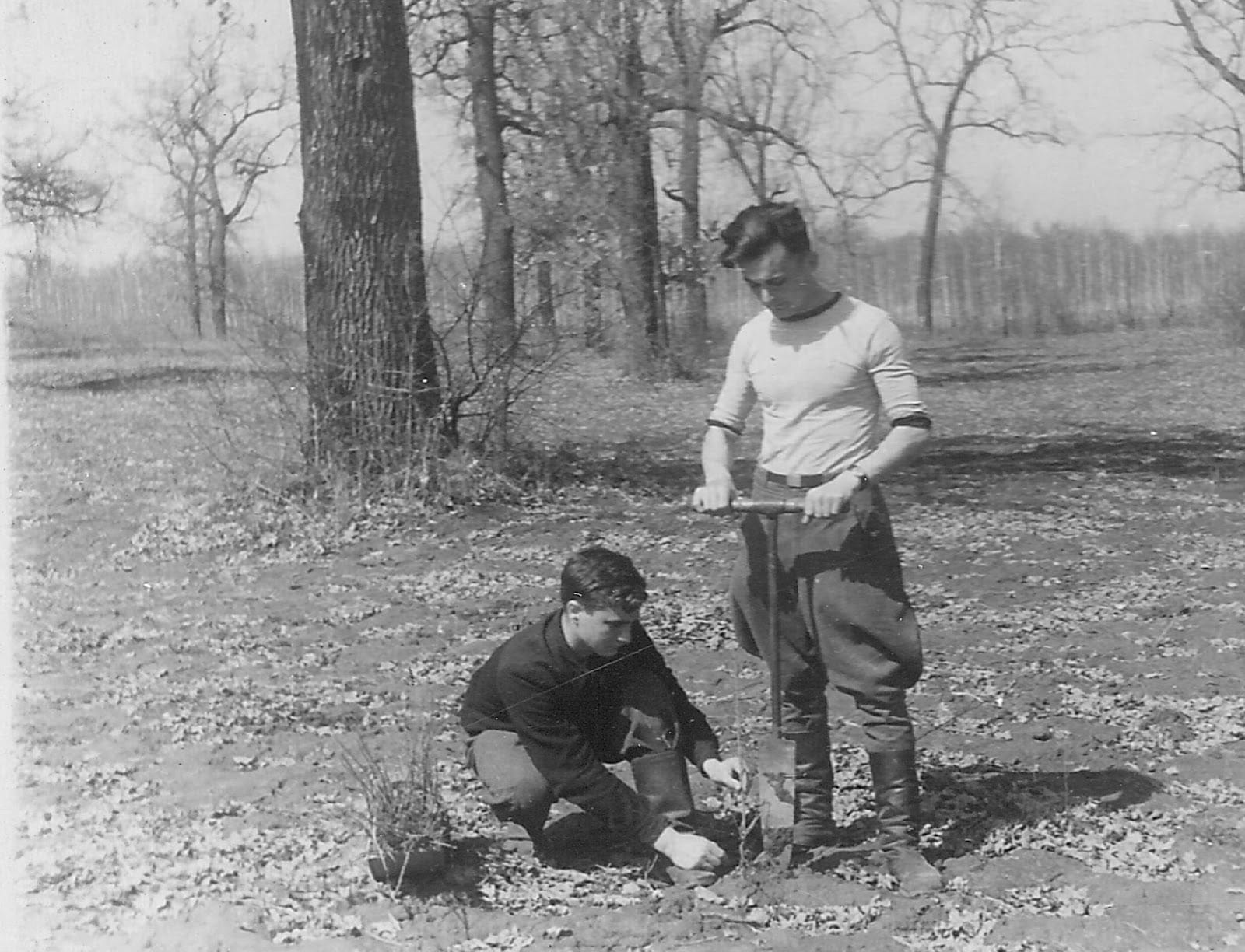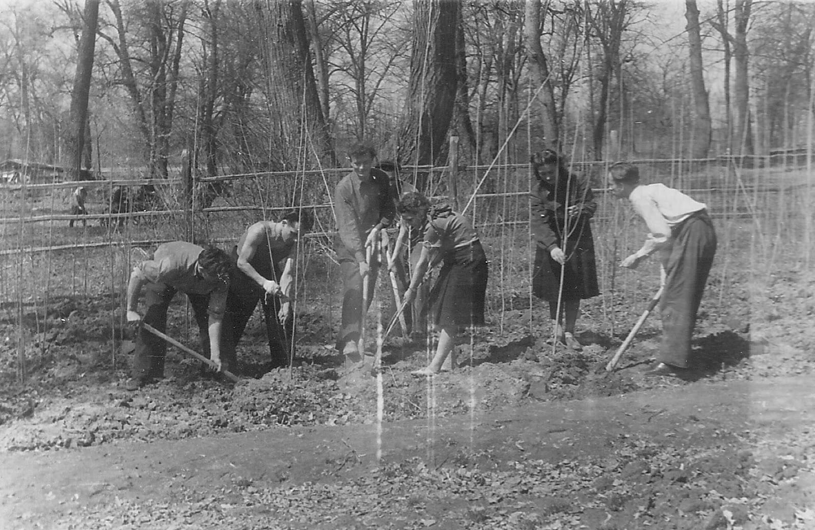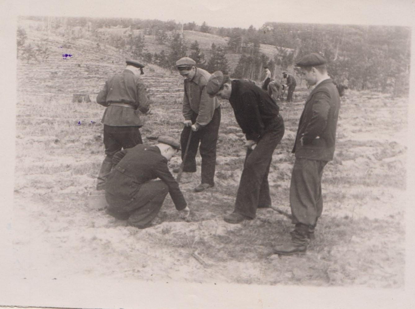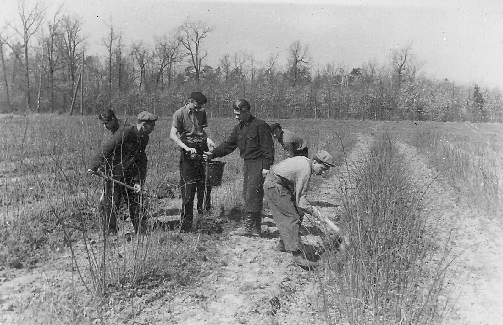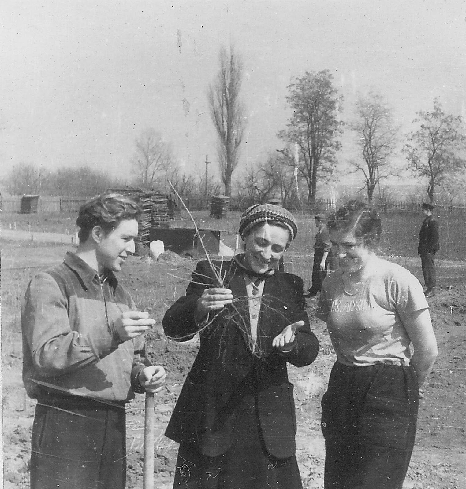 Фото 1. Студенти на практиці у лісовому розсаднику, 1948 р.