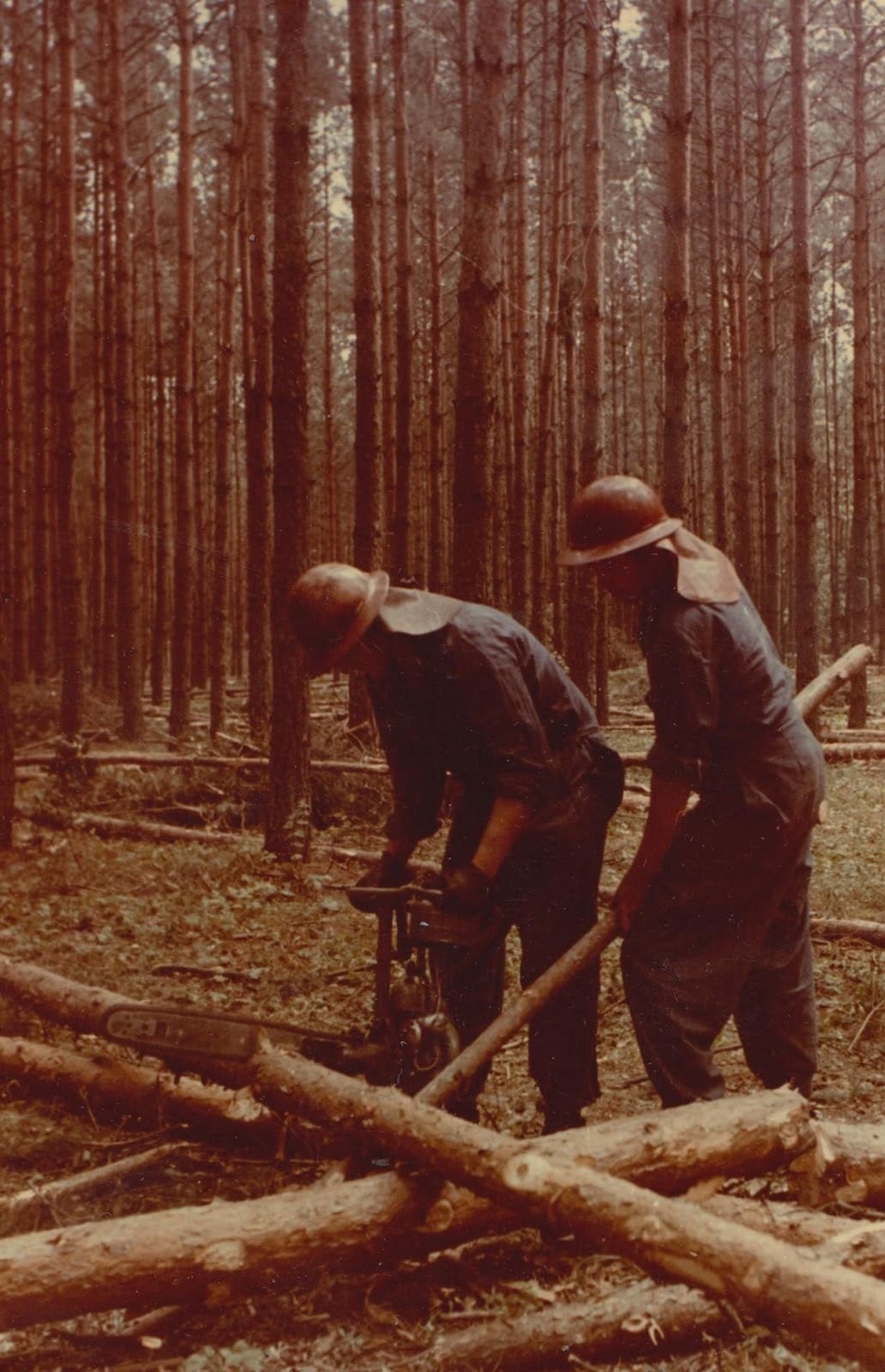Фото 29. Студенти на механізованій розробці хлистів від рубок догляду 1970 р.