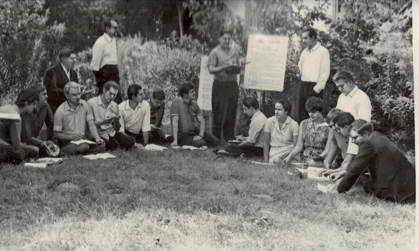 Рис. 32_2. Заняття у лісі зі студентами під час навчальної практики. Проводить проф. А.А. Салганський, 1971 р.