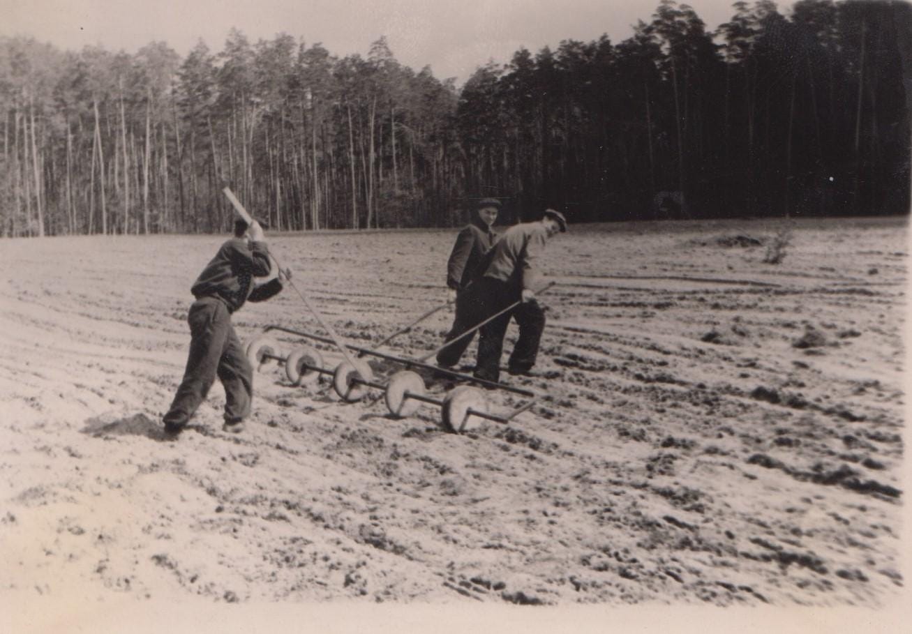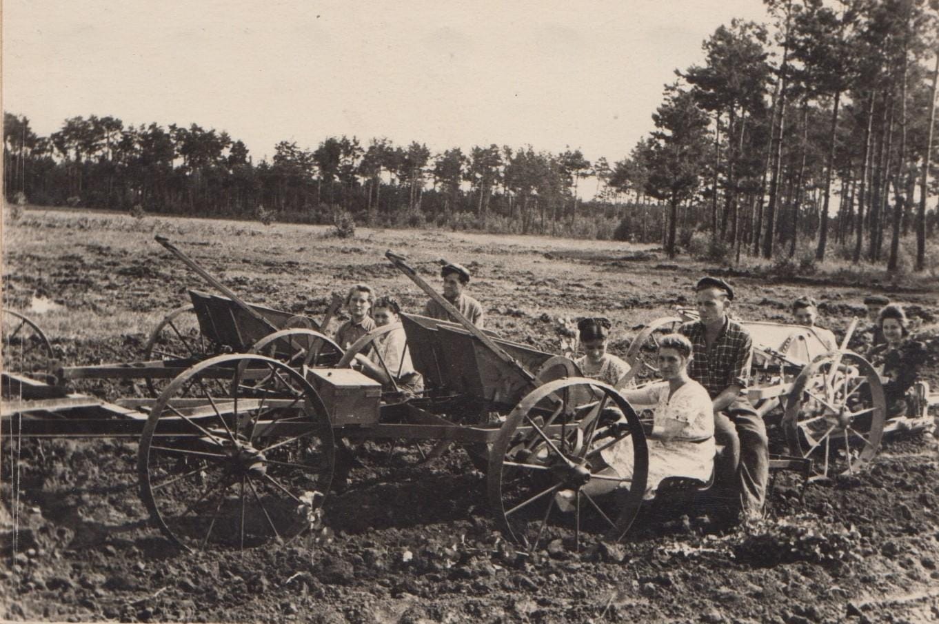 Фото 23. Механізована посадка лісових культур студентами з використанням лісосадильної машини СБН-1, 1964 р.