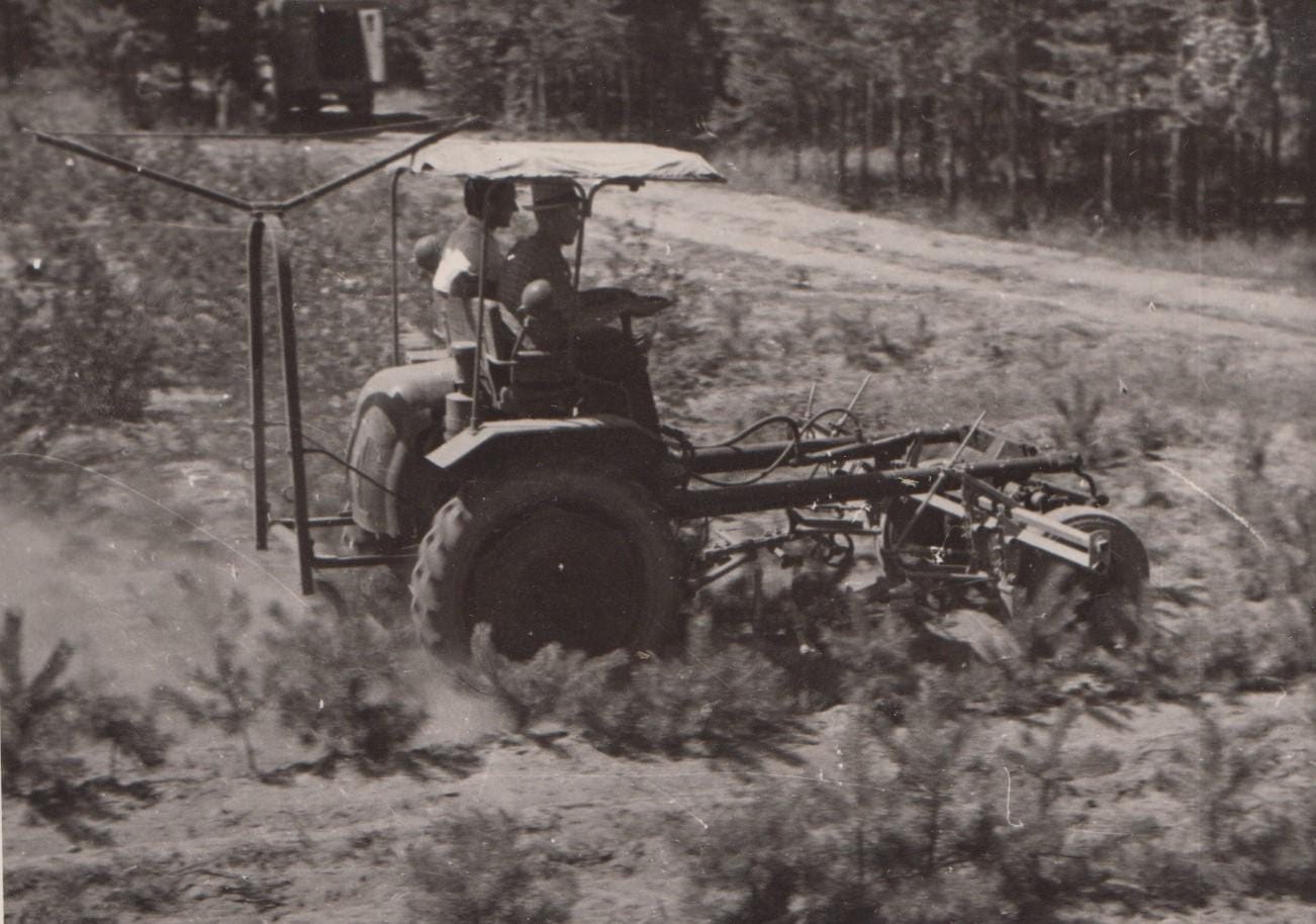 Фото 24. Навчання студентів з проведення догляду за лісовими культурами культиватором КЛЗШ-2,8, 1964 р.