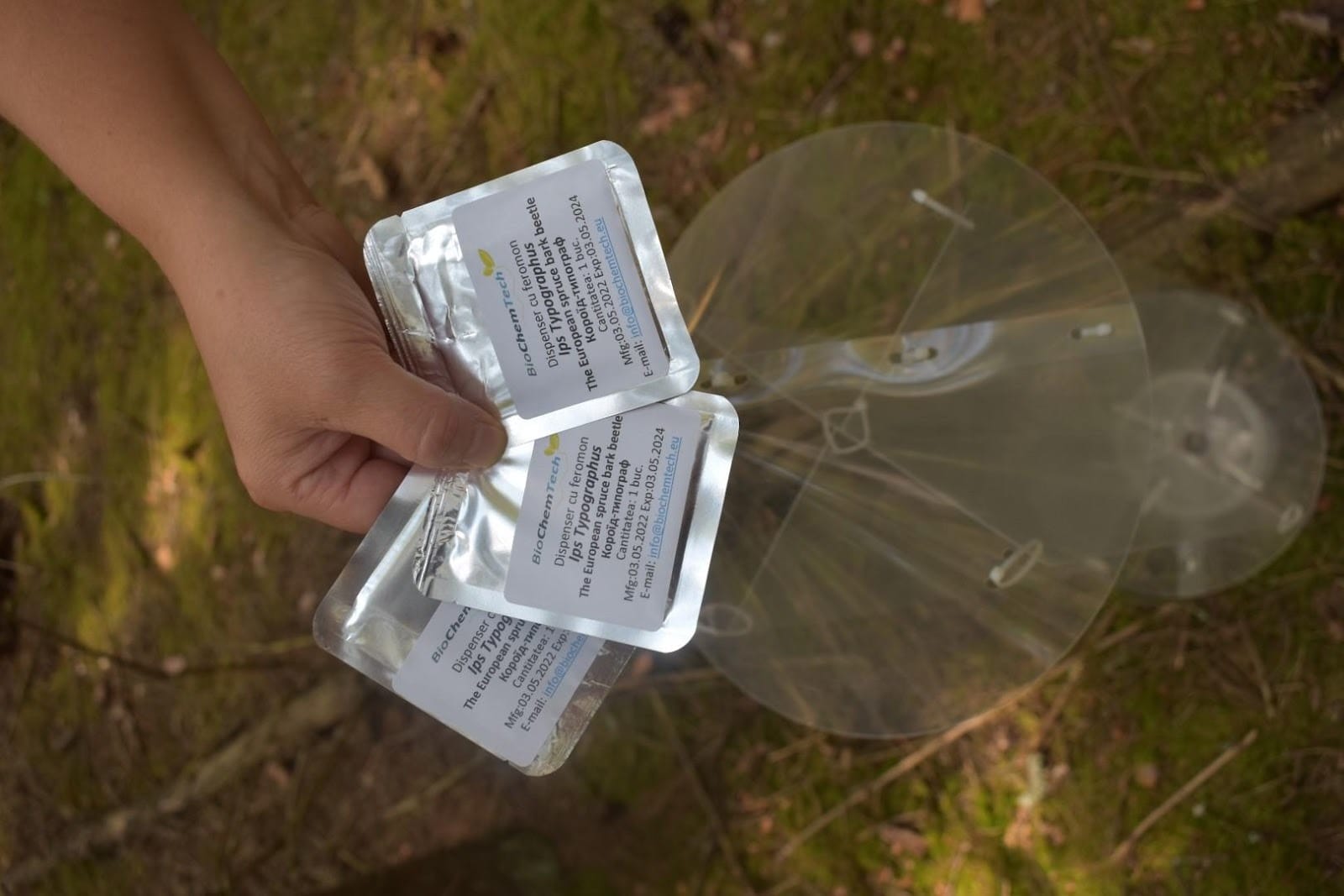 Разом із науковцями кафедри лісівництва в лісових масивах ВП НУБіП України «Боярська ЛДС» розпочалася робота з обліку шкідників шляхом розвішування феромонних пасток з метою визначення чисельності популяції короїда-типографа. Вперше здатність шкідників знаходити протилежну стать за специфічним запахом описав французький вчений-ентомолог Жан Анрі Фабр на початку минулого сторіччя. У період активного спарювання комах, самки шкідників виділяють особливі речовини – статеві феромони спеціальними залозами для приваблювання чоловічих особин. На тепер розроблено декілька типів синтетичних феромонів, за допомогою яких відловлюють або дезорієнтують імаго самців, створюючи так званий «самцевий вакуум». Самки виявляється не в змозі дати потомство, тому що відкладають незапліднені яйця, які незабаром гинуть. Феромонні пастки використовують як засіб боротьби зі шкідливими організмами та як спосіб спостереження за ними. За декілька тижнів, після зняття обліків, студенти та науковці проведуть аналіз зібраного дослідного матеріалу.