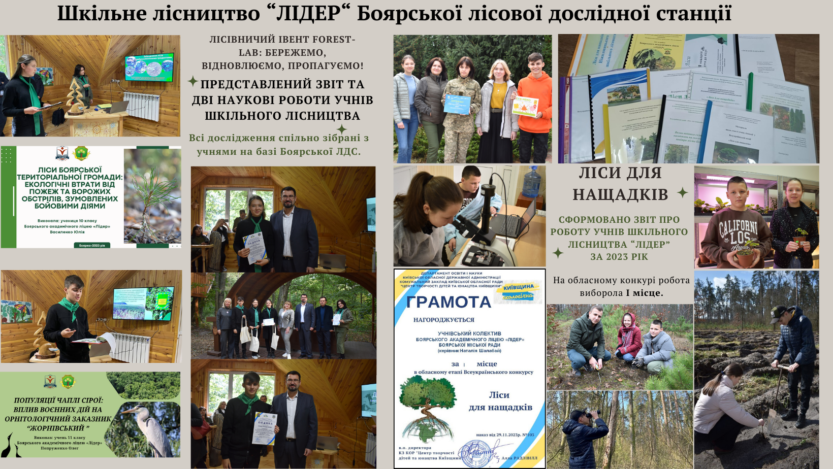 Еколого-просвітницька діяльність у Боярській ЛДС спрямована на екологічне виховання молоді та формування в них бережливого ставлення до лісів та природи в цілому. У 2023 році до Боярської ЛДС у форматі екскурсій, виїзних уроків та майстер класів завітали близько 350 учнів загальноосвітніх навчальних закладів. Працівники станції разом з учнями взяли участь у низці екологічних заходів: День довкілля, День чистих берегів, Ліси для нащадків, Підгодуй птахів взимку, Київщина екологічна та ін.