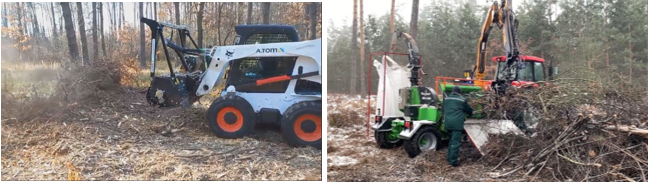 – міні навантажувачем Bobcat у агрегатуванні з лісовим мульчером.
