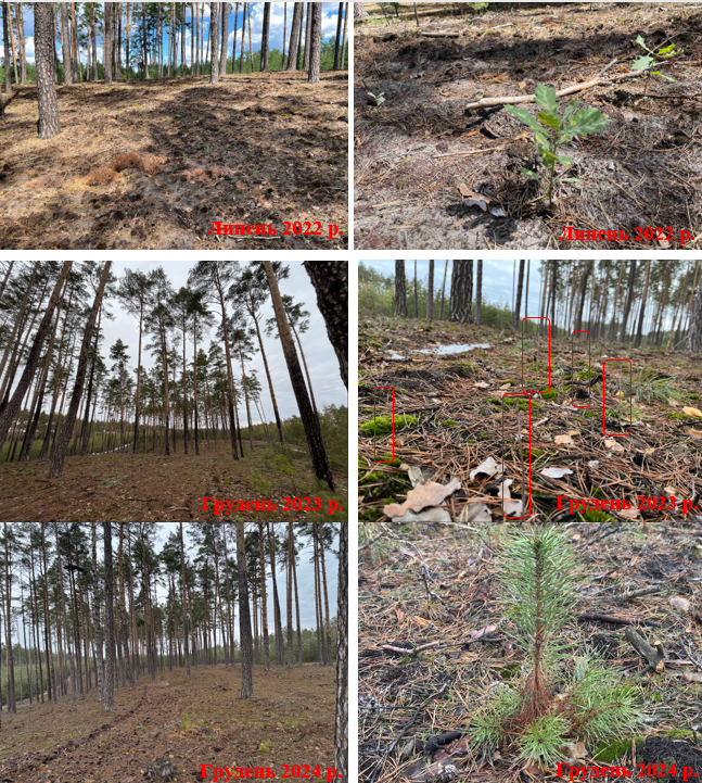 На площі понад 70 га у 2024 році закладено низку науково-дослідних стаціонарів з метою вивчення ефективності заходів сприяння природному поновленню при проведенні поступових рубок головного користування. На ділянках проведено рихлення ґрунту різними методами:
