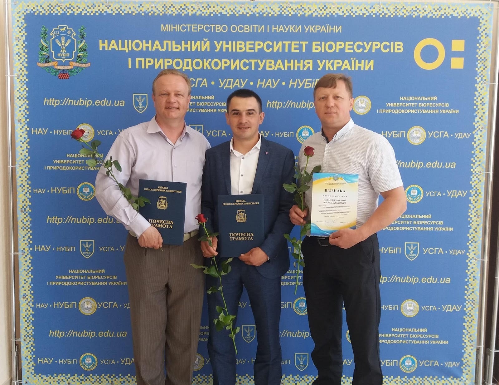 За багаторічну сумлінну працю, особистий внесок у розвиток аграрного сектору і сільськогосподарського виробництва, досягнення вагомих успіхів у професійній діяльності та з нагоди 120-річчя університету почесною грамотою Київської обласної державної адміністрації нагороджені: лісничий лісової дільниці Плесецького лісництва Боярської лісової дослідної станції Ігор Невгадовський та начальник відділу лісового господарства Боярської лісової дослідної станції Роман Сова.