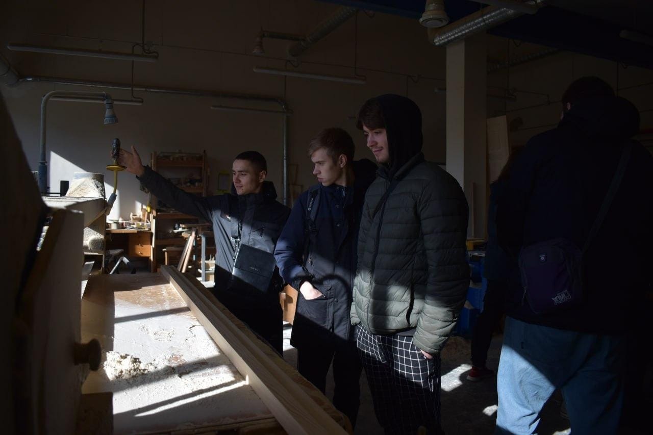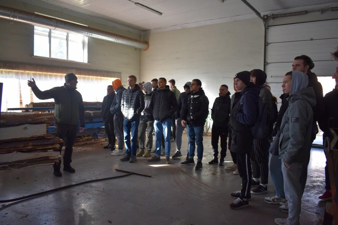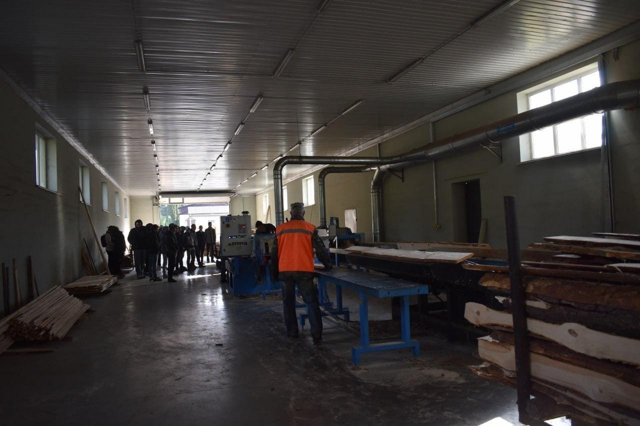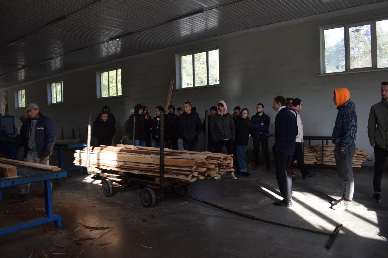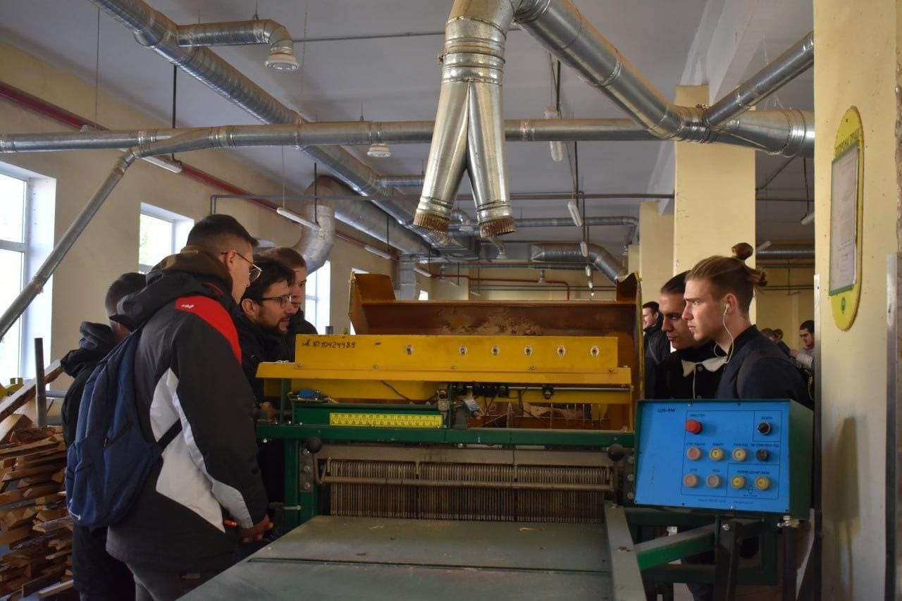 До участі в семінарі долучилися студенти спеціальності 187 "Деревообробні та меблеві технології" 2-го та 3-го курсів, які зараз, згідно графіку освітнього процесу, знаходяться на очному навчанні. Всі присутні мали можливість ознайомитися з повним циклом перер обки деревини: починаючи від розкрою круглих лісоматеріалів і закінчуючи виготовленням готових до експлуатації виробів, які всі не один раз використовували перебуваючи в Університеті!
