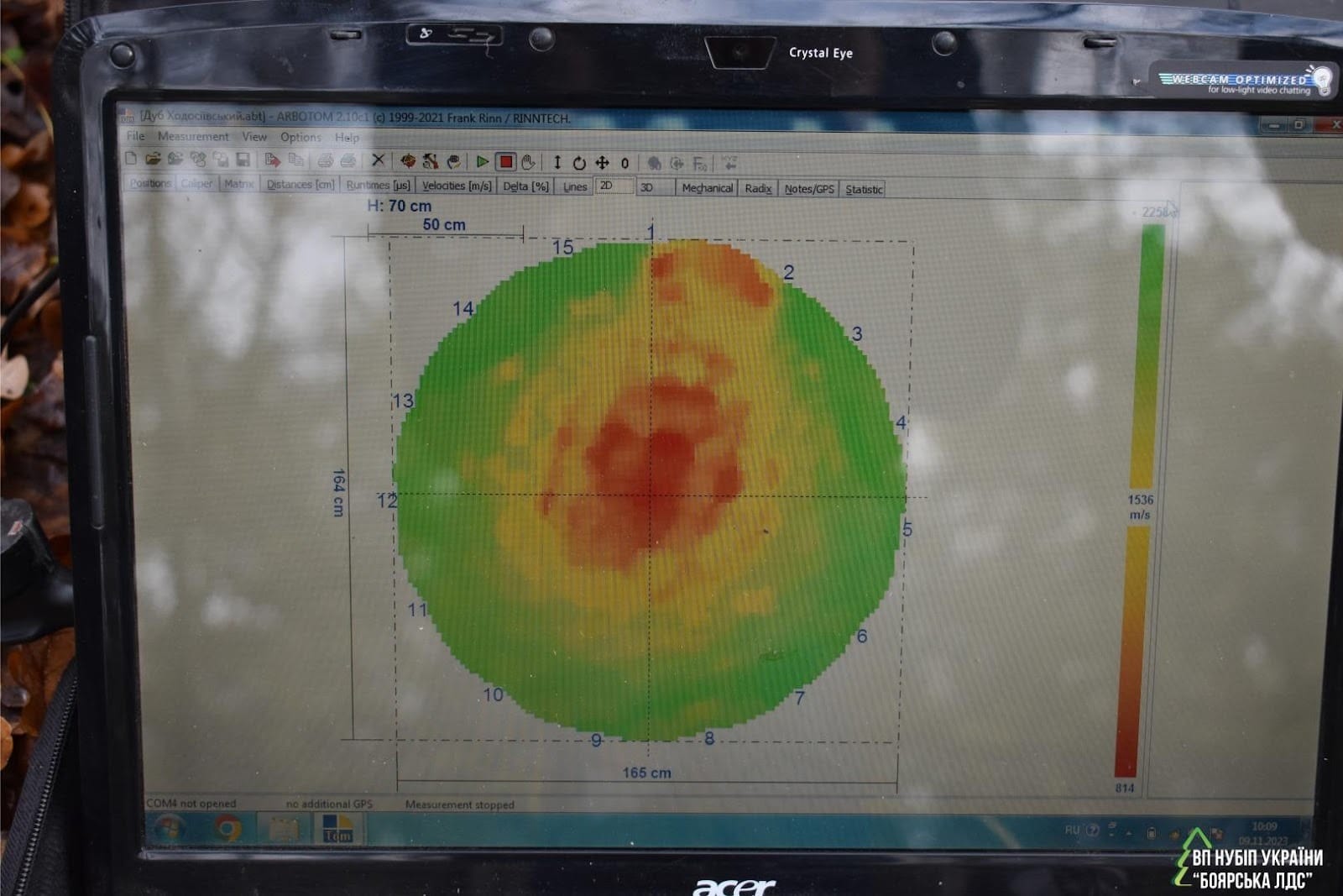 Учні Боярського академічного ліцею "Лідер" продовжують вражати своєю зацікавленістю та відзначаються особливим ентузіазмом. Спільна співпраця з Боярською ЛДС надає учням чудову можливість досліджувати унікальні об'єкти лісових екосистем. Сьогодні Олійник Дарія учениця 10го класу взяла участь у важливих обстеженнях вікових дубів на території Київської області. Кушнір Анатолій Іванович, почесний член Міжнародного товариства дослідження і охорони дерев, розповів про те, наскільки важливо досліджувати та охороняти вікові дерева. Об'єктами обстеження стали Ходосіївський та Вітяно-Припільського дуби, які зростають на території лісового фонду Боярської ЛДС. Наші колеги з "Київзеленбуд", які мають у розпорядженні німецький томограф "ARBOTOM", фактично змогли проникнути в структуру дерев. За допомогою звукових імпульсів встановлено стан деревини стовбура та її вади. Зелений або жовтий колір на екрані свідчив, що ніяких руйнівних процесів не відбувається, тоді як червоний або помаранчевий демонструє наявність пустот і захворювання деревини. Проведені дослідження будуть в несені у паспорт дерева і відображенні на інформаційних стендах поблизу ботанічних пам'яток природи місцевого значення.
