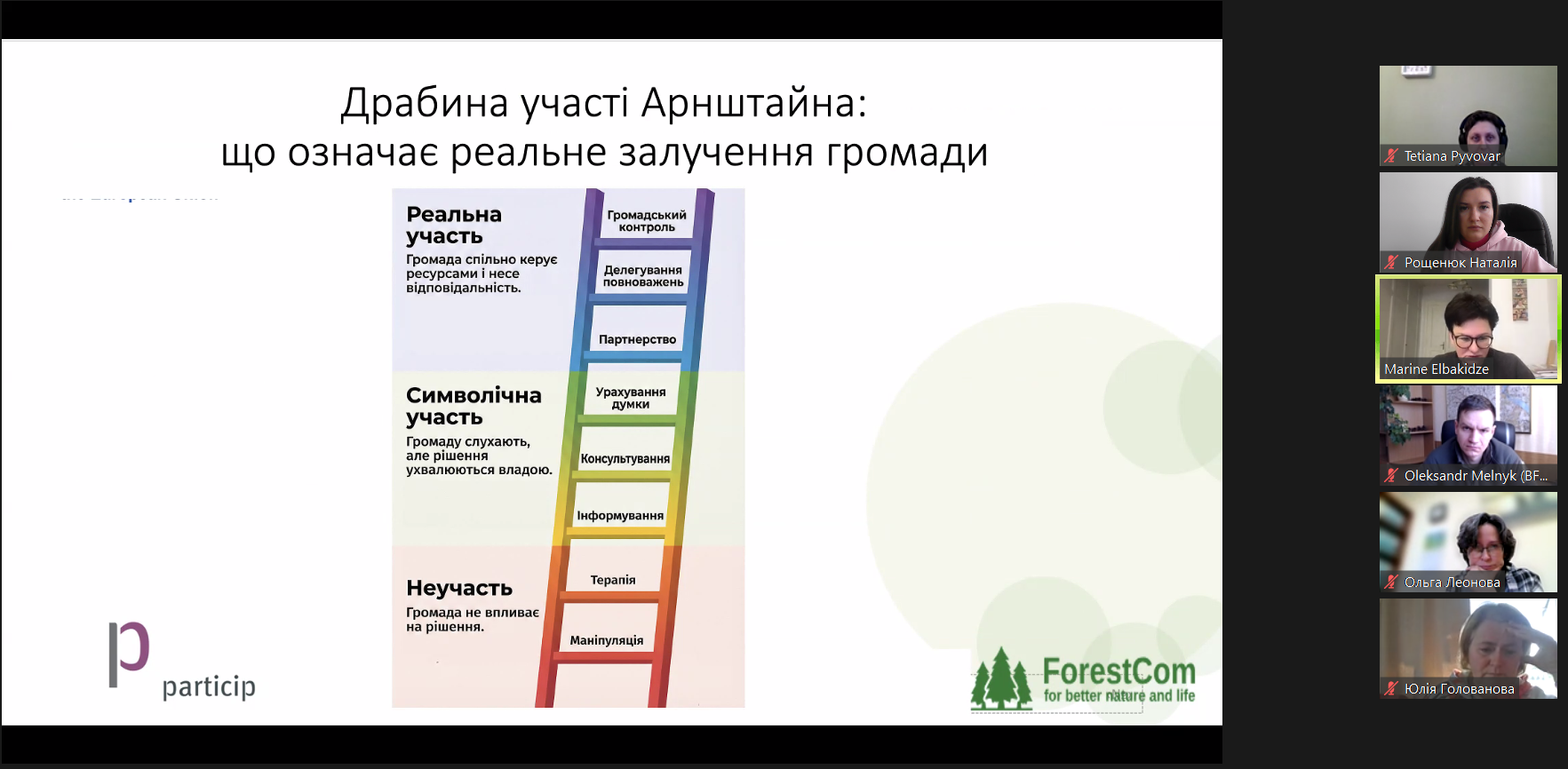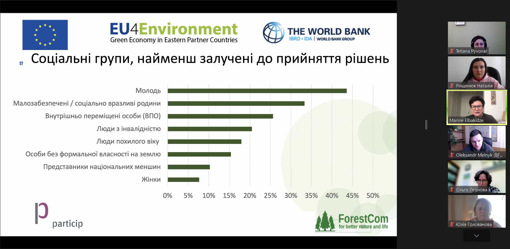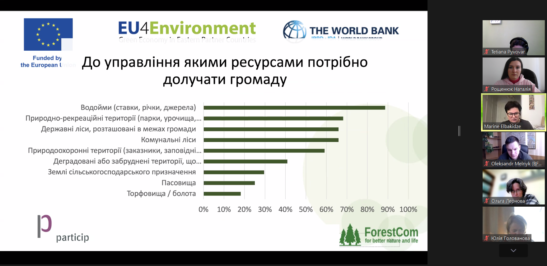 - чи готові жителі долучатися до прийняття рішень щодо використання лісів і водойм;