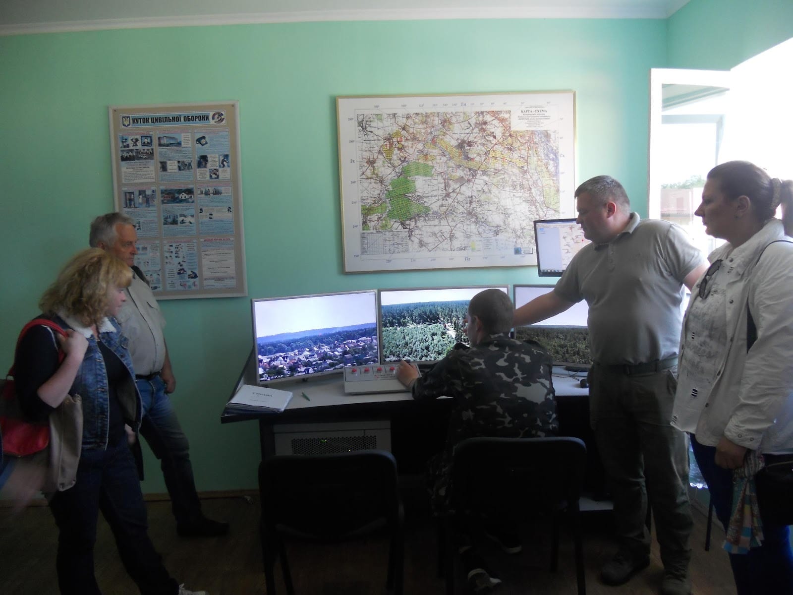 Далі гості мали можливість ознайомитися з системою відеоспостереження на лісовій пожежній станції, яка дозволяє оперативно реагувати на виникнення лісових пожеж, встановлювати точне місце виникнення та координувати діяльність пожежних автомобілів.